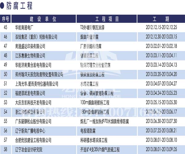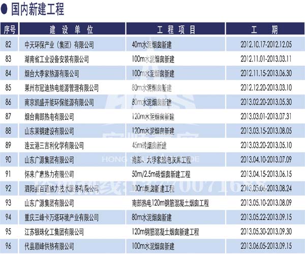 宏順建設(shè)工程有限公司是國家批準(zhǔn)成立的專業(yè)高空作業(yè)企業(yè):承攬過(國內(nèi).國外)煙囪新建、煙囪防腐、磚煙囪新建、煙囪改造、煙囪維修、煙囪脫硫防腐、煙囪拆除加高、煙囪滑膜等高空作業(yè)工程。具有“不搭腳手架 、 不需要停產(chǎn)”施工特點。